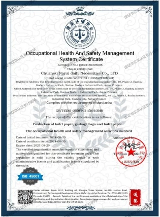 Nari Daily Products leads the industry in production safety and regulatory compliance, with an accident rate far below the average for general industrial paper and PE bag manufacturers.